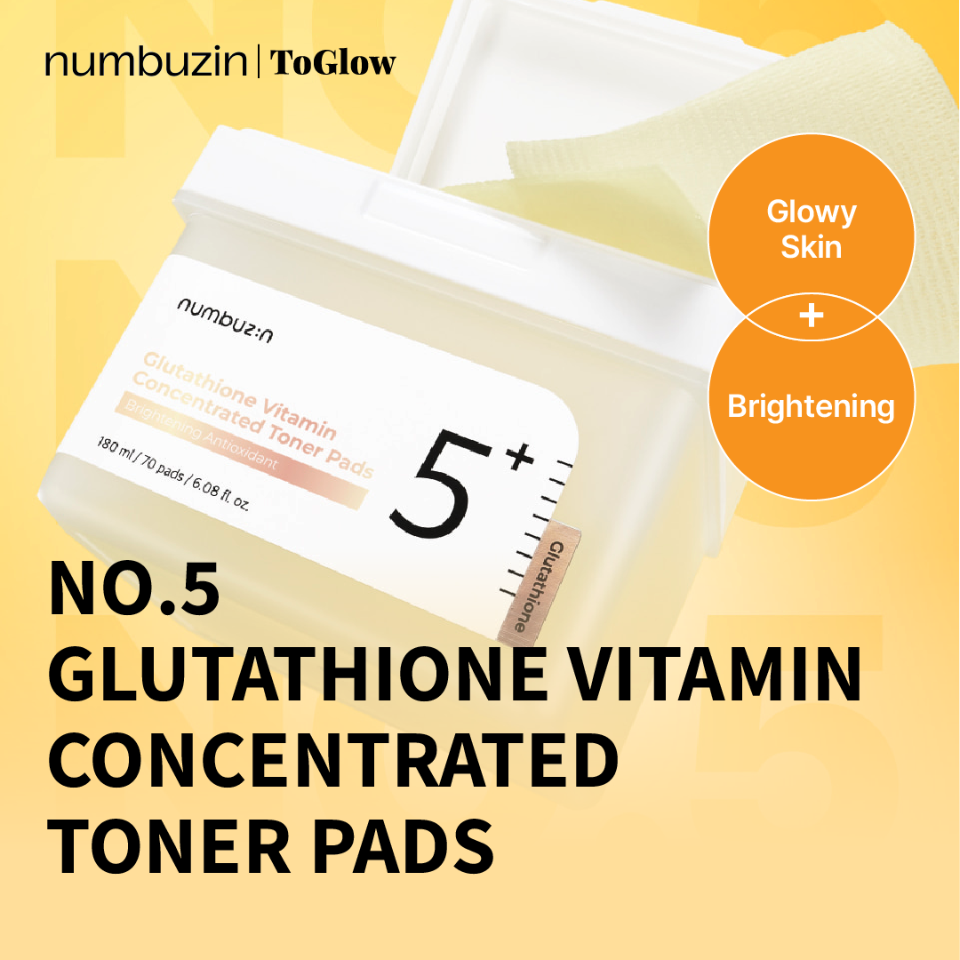 [numbuzin] No.5 Glutathione Vitamin Concentrated Toner Pads 70pcs | Brightening Toner Pads for Radiant, Even Skin