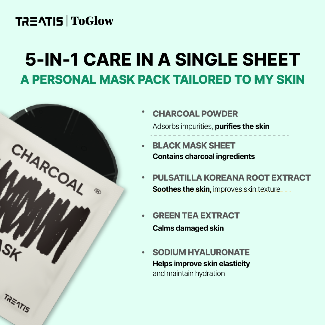 TREATIS Charcoal Mask 10pcs | Purify Pores, Control Oil
